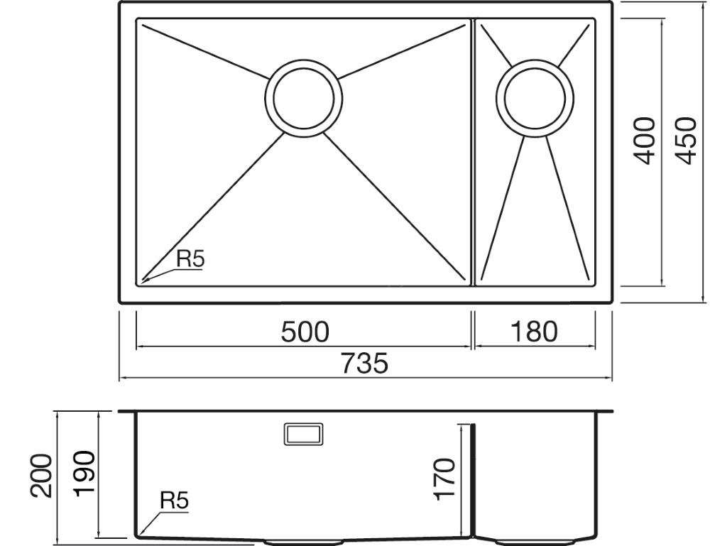 VL68S - Volta 1.5B 735x450mm - Left or Right main bowl required to be selected when ordering.
