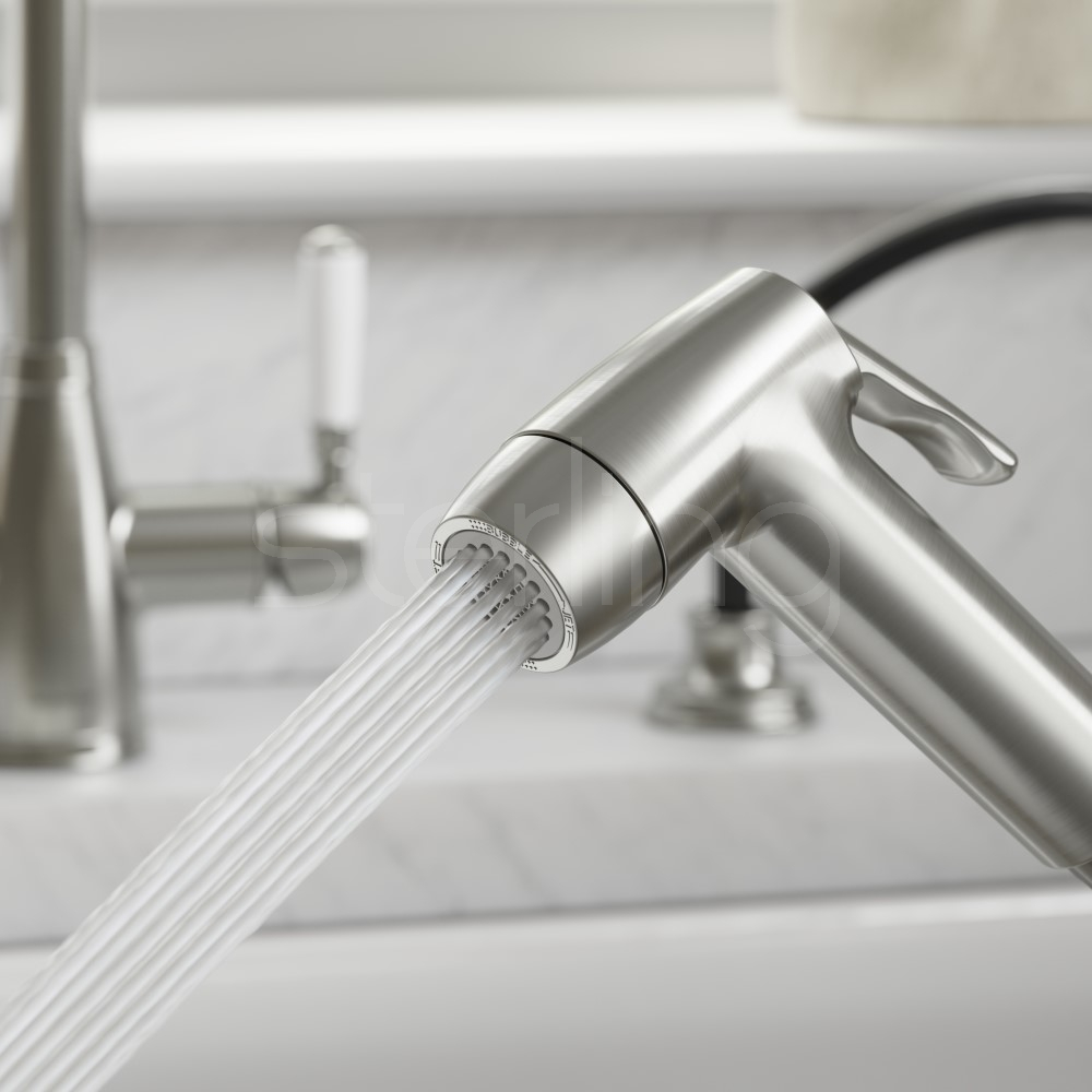 There are two flow types at cold mains pressure: Aerated - ideal for vessel filling and gentle rinsing of delicate food. Needle-jet - for rinsing the crockery prior to the dishwasher, food preparation - washing salads and rice etc and rinsing around the sink bowl and drainer after use.