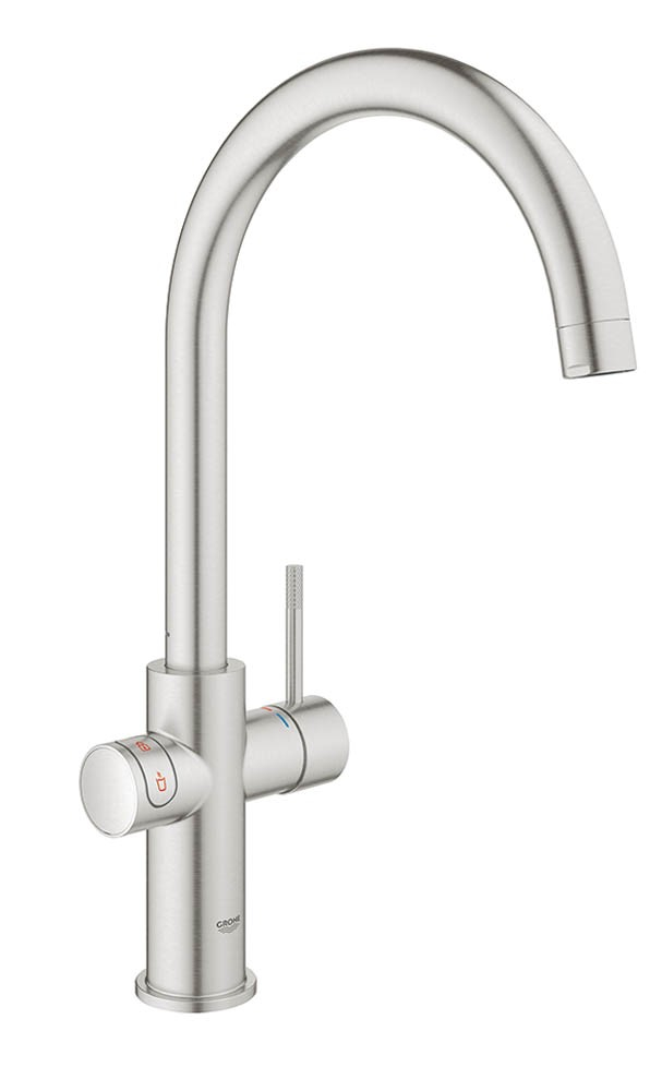 Grohe Red is designed to be the safest system available. The tap has a fail-proof child lock and safety function that eliminates all danger of scalding. Grohe Red has a patented aerator, which ensures that the stream of boiling water flows smoothly without spattering. The second you take your hand off the button, the cut-off function instantly stops the flow of water.
