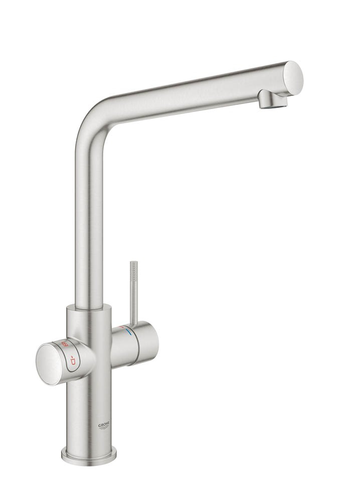 Grohe Red is designed to be the safest system available. The tap has a fail-proof child lock and safety function that eliminates all danger of scalding. Grohe Red has a patented aerator, which ensures that the stream of boiling water flows smoothly without spattering. The second you take your hand off the button, the cut-off function instantly stops the flow of water.