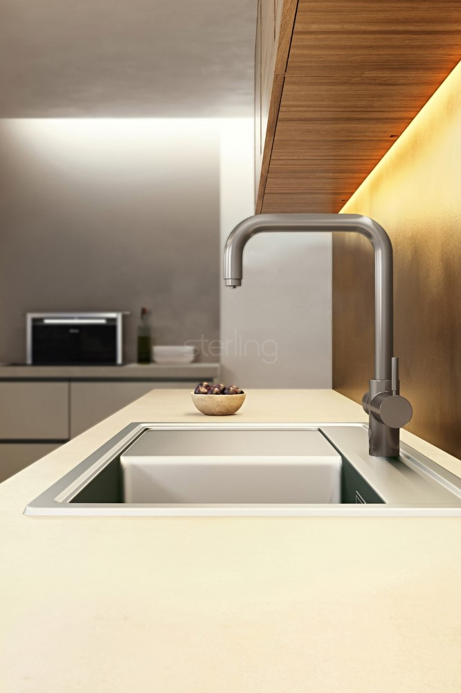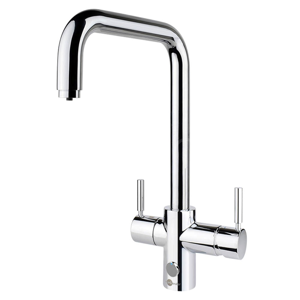 Just like the 3N1 hot tap, the 4N1 Touch provides everyday regular hot and cold water as well as filtered steaming hot water at the pull of a lever. However, the 4N1 Touch takes it a step further and adds a 4th function. Imagine on demand steaming hot water available at your fingertips. Gone are the days of having to wait for the kettle to boil when you're doing the tea run for the family or hoping to start boiling a pot of pasta more quickly. Now these kitchen tasks can be complete almost instantaneously. The 4N1 Touch steaming hot water tap dispenses filtered steaming hot water at the pull of a lever. The quiet and compact NeoTank sits easily inside the cupboard under your sink and features a digital adjustable dial that allows you to set your preferred temperature between 88° C and 98° C. We're introducing a new way to interact with your hot tap. We have developed an industry leading touch button that responds immediately to the touch of your fingers to dispense instant filtered cold water. The filtered cold water works with our tried and tested InSinkErator® water filters to improve the taste of cold drinks by filtering out hardness, limescale and other impurities. U spout. Available in Chrome, Brushed Nickel & Black Velvet