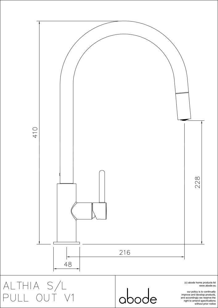 The tall swan neck spout of the Althia Pull out spray tap provides added functionality and flexibility allowing you to reach into the corners of even the largest of sinks. A minimal design that maximises on performance and style.