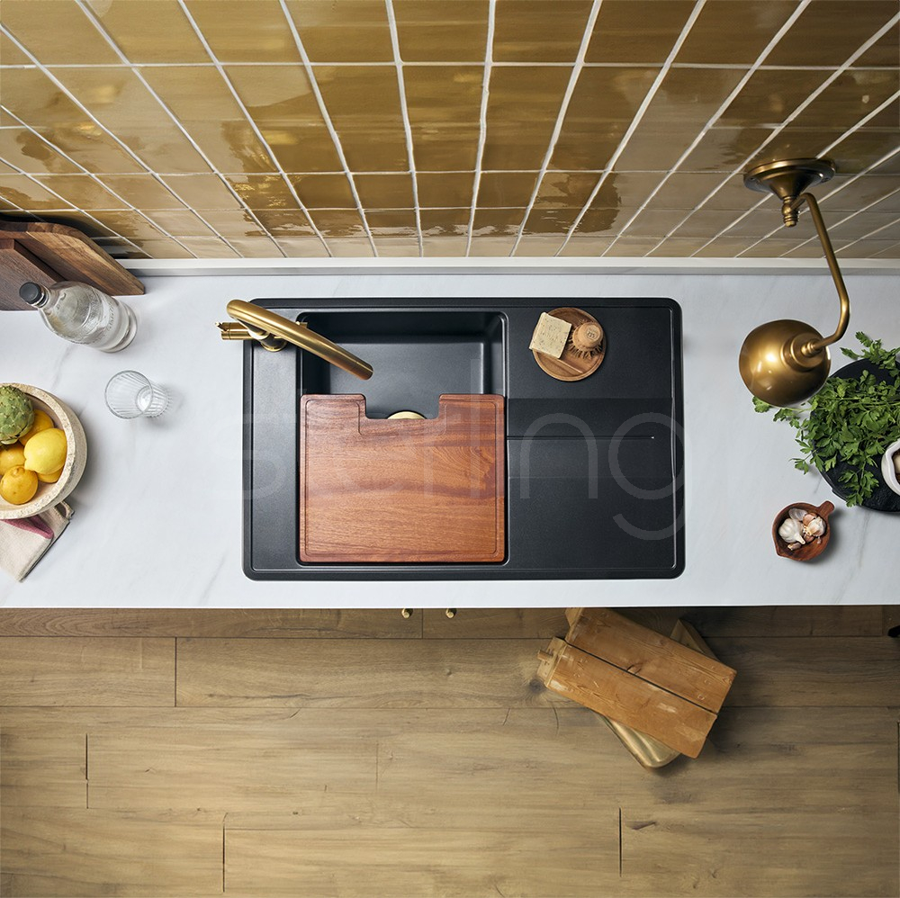 The Arina is notable by its side tap-ledge in place of the typical rear position, this allows the bowl to take up the full depth of the sink improving capacity for the bigger pots and pans which bely the Arina's compact dimensions. Both models are equipped with the 'Smart' accessory rail system to station the chopping board that is included with both models. All available in six fabulous colours. Designed with modern kitchens in mind, the ARID101 pairs sleek aesthetics with superior quality. Its spacious drainer, measuring 780 x 500 mm, provides practical functionality while maintaining a compact footprint.