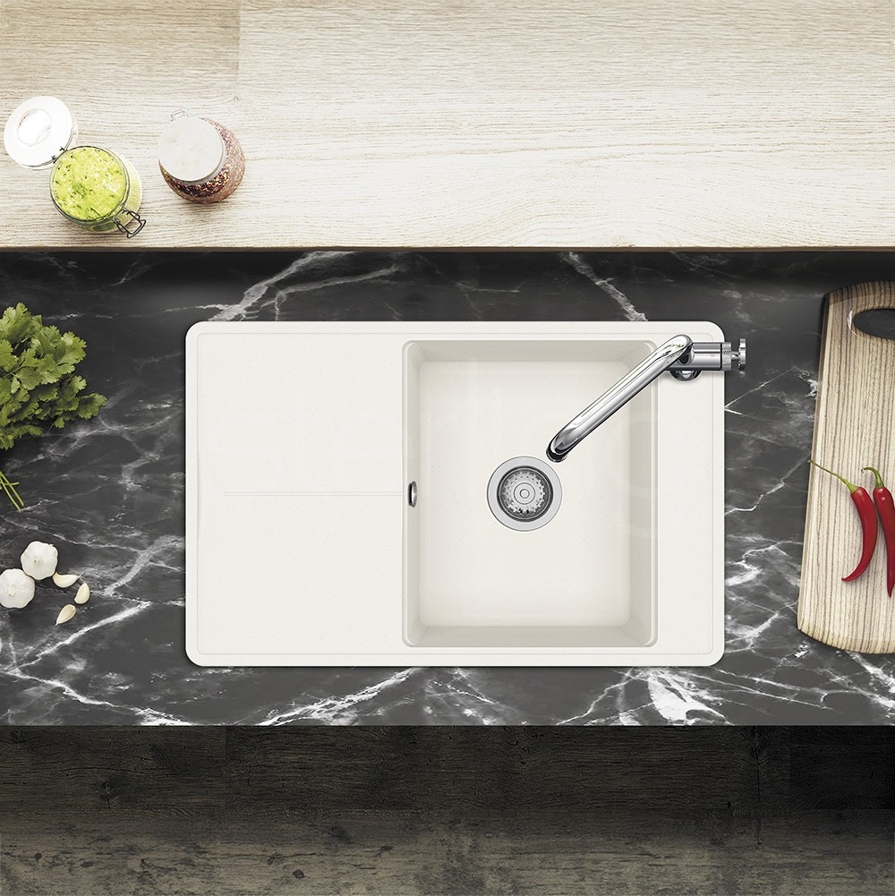 The Arina is notable by its side tap-ledge in place of the typical rear position, this allows the bowl to take up the full depth of the sink improving capacity for the bigger pots and pans which bely the Arina's compact dimensions. Both models are equipped with the 'Smart' accessory rail system to station the chopping board that is included with both models. All available in six fabulous colours. Designed with modern kitchens in mind, the ARID101 pairs sleek aesthetics with superior quality. Its spacious drainer, measuring 780 x 500 mm, provides practical functionality while maintaining a compact footprint.