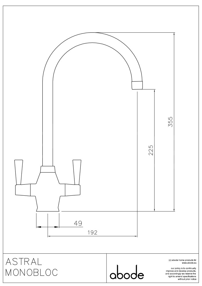 Give a sparkling touch to your kitchen with Astral Kitchen Tap that is a unique creation of Abode. The distinctive and contemporarily designed tap has dual lever control, for convenient use. This tap has a ravishing curvy spout for smooth and easy water flow, and quarter turns ceramic disc technology for precise flow control. The durable and elegant kitchen beauty seamlessly blends with your kitchen decor.