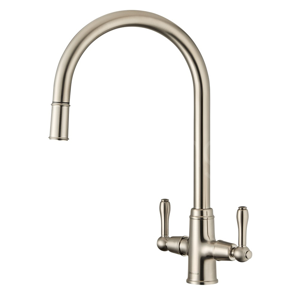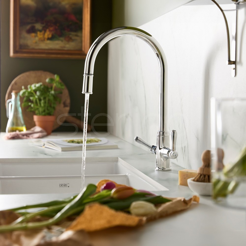 The Broadway Pull-Out perfectly balances vintage character with modern kitchen practicality. Inspired by Victorian design yet tailored for contemporary living, this tap features distinctive solid metal twin levers and a gracefully curved swivel spout. The discreetly integrated pull-out rinse enhances everyday functionality while maintaining the collection’s classic, heritage aesthetic.