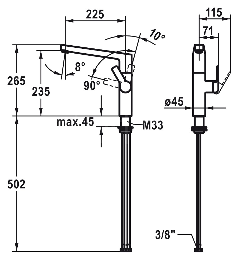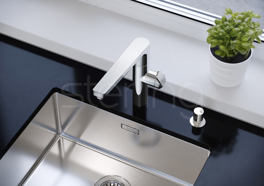 The Domo family combine top lever and side lever models and a choice of pull-out spray models offering the latest 'Tripleclean' flow technology. The new generation of taps are refined with assured KWC Swiss quality that are a pleasure to use with their ergonomic design. Domo Single Lever monobloc with swivel spout.