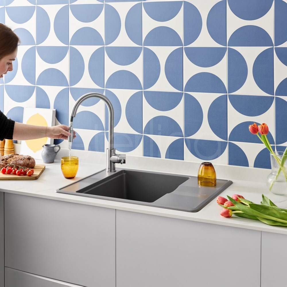 The Ember Pull-Out Tap combines elegant design with precision engineering, featuring clean, crisp detailing that enhances any kitchen space. The tall spout includes a seamlessly integrated pull-down spray, delivering excellent performance even at low pressures (from 0.3 bar) with a clear laminar flow. For added versatility, the tap comes with an interchangeable twin-spray head, allowing you to switch effortlessly between a soft aerated flow and a powerful needle jet—perfect for rinsing and creating detergent foam.
