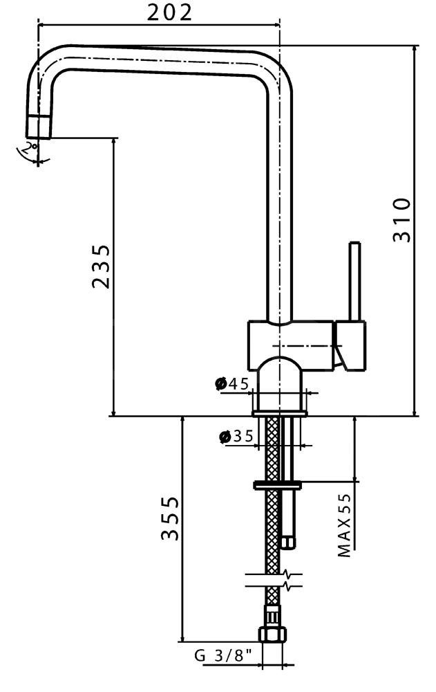 The Etruscan is traditional in style, featuring a distinctive spout on its monobloc body and beautiful 'Hot' and 'Cold' ceramic indices on the lever handles.
