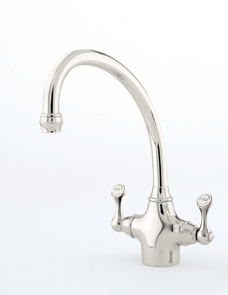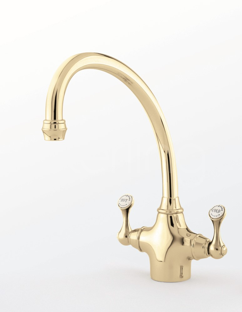 The Etruscan is traditional in style, featuring a distinctive spout on its monobloc body and beautiful 'Hot' and 'Cold' ceramic indices on the lever handles.
