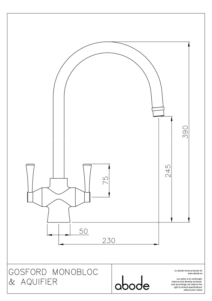 The Gosford Monobloc takes its form from both traditional and contemporary styling cues. A tall sweeping swan neck spout and smooth tapered handles fuse with a clean symmetrical body to create a tap of modern day elegance.