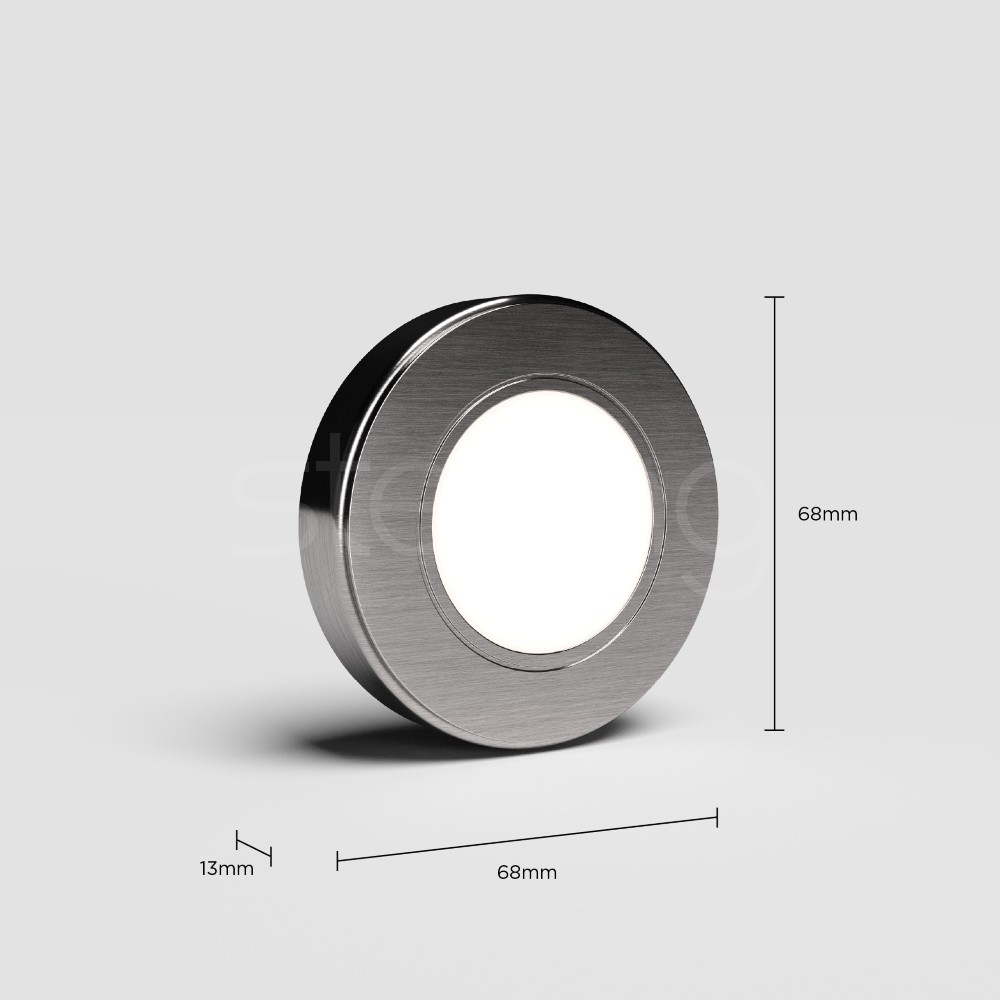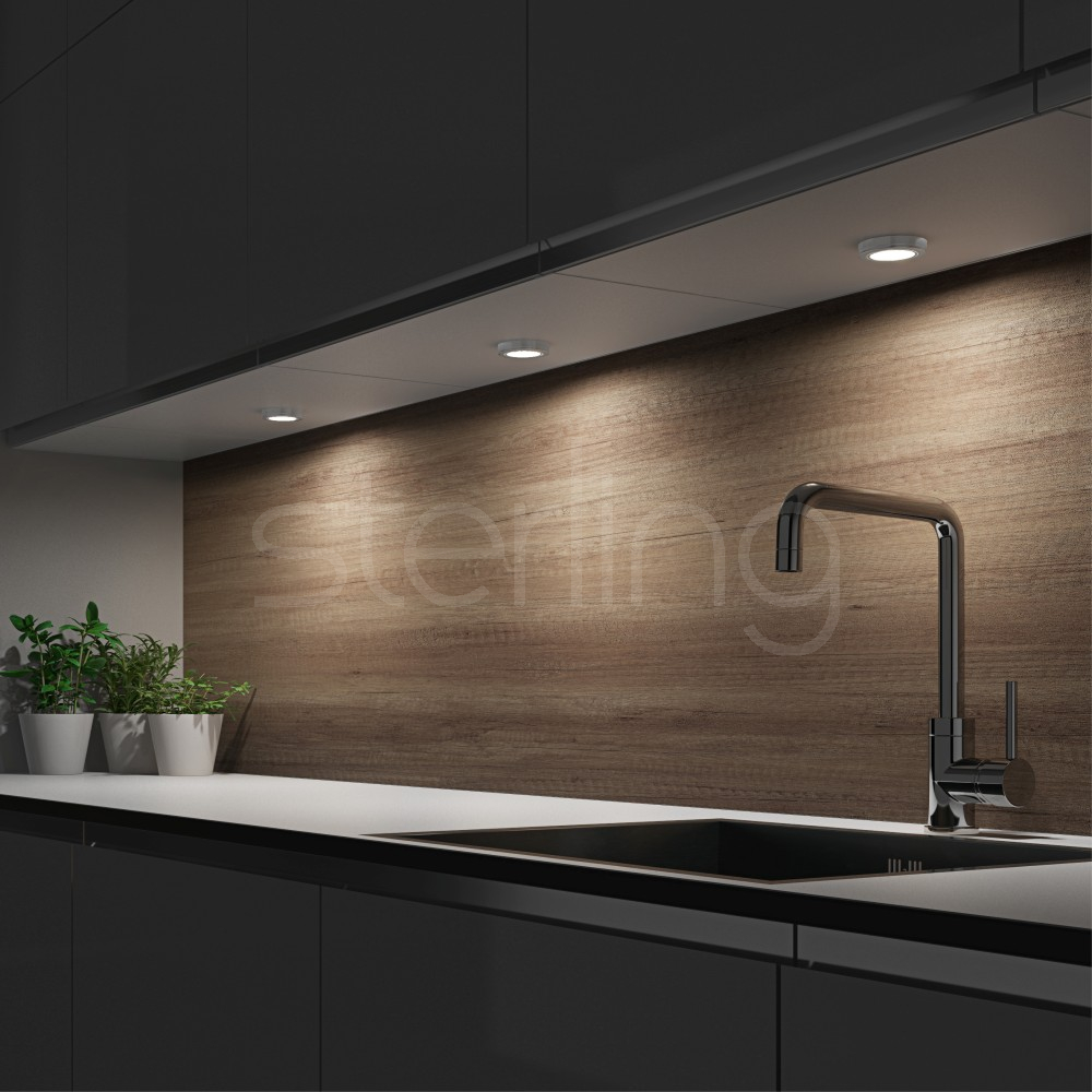 The Hype TrioTone R is a compact and highly versatile LED under cabinet light, designed to provide flexible illumination tailored to any kitchen environment. Featuring TrioTone® technology, it allows you to select between warm, natural and cool white light at the point of installation, ensuring the perfect ambience for both modern and traditional settings. Its slim, circular design in a stainless steel finish offers a clean, discreet look, while the removable collar enables both surface-mounted and recessed installation. A fully diffused light output eliminates visible LED dots, delivering smooth, even illumination across work surfaces.