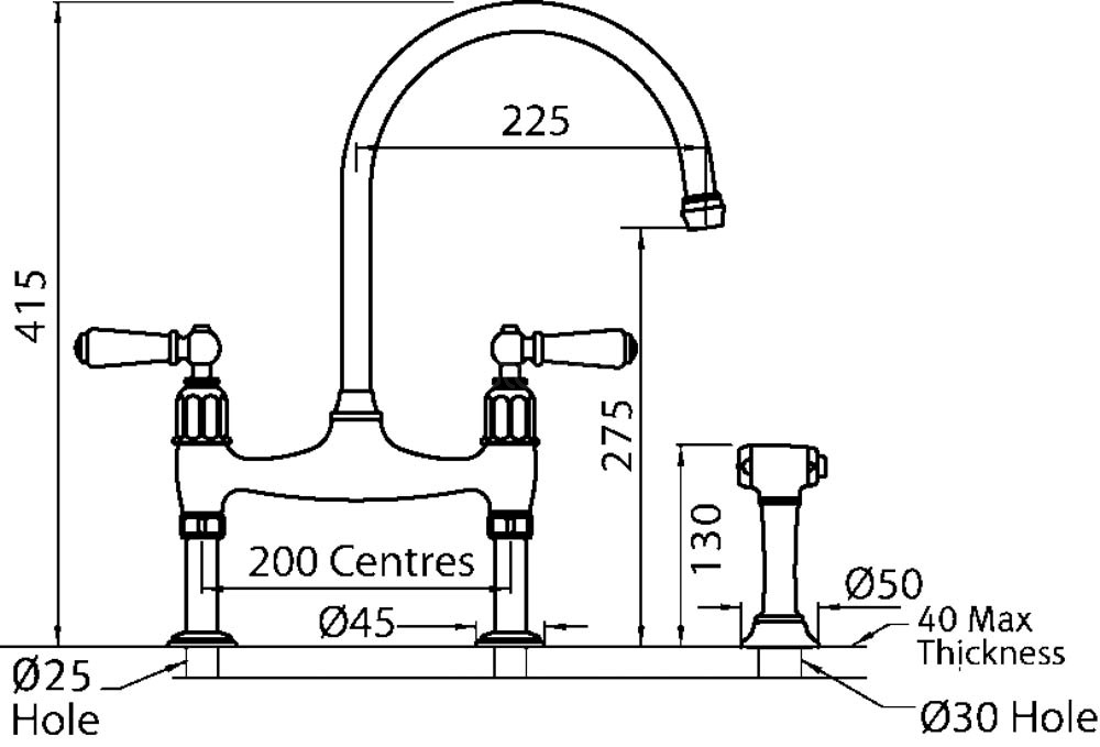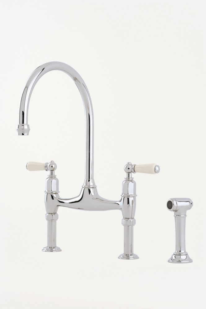 The classic bridge mixer, this Ionian with lever handles also features handy side spray rinse for a helping hand in the kitchen.