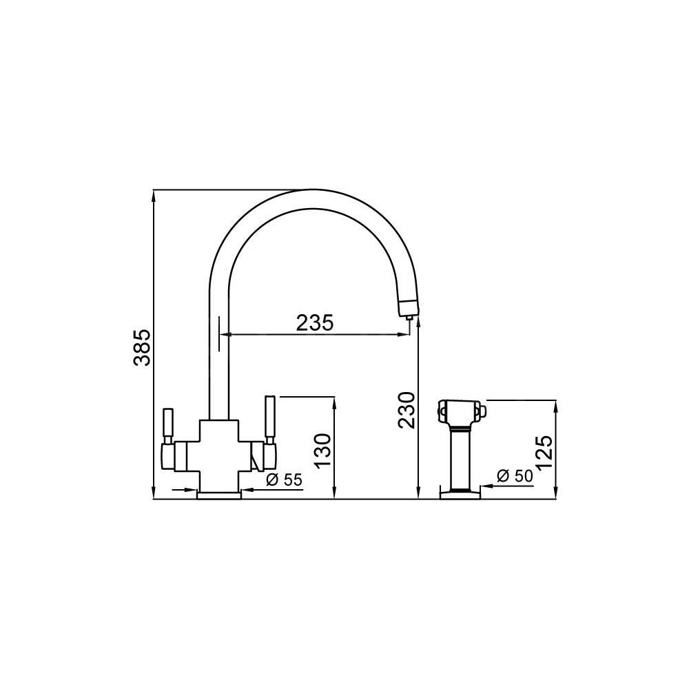This contemporary Juliet kitchen mixer not only dispenses hot, cold and near-boiling water, but it also features a side spray rinse and lever handles. This design makes it easy to rinse pots and pans.