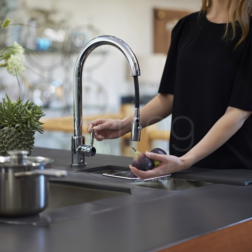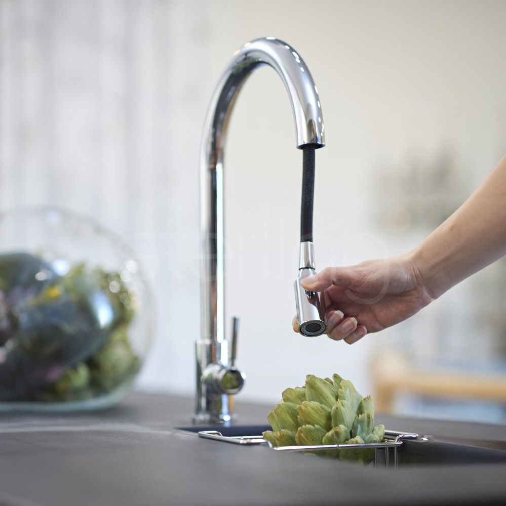 The Juliet collection is one of our most contemporary kitchen collections, and works in most kitchen designs. This tap features a pull-down rinse from the spout, to help with cooking and cleaning in the kitchen