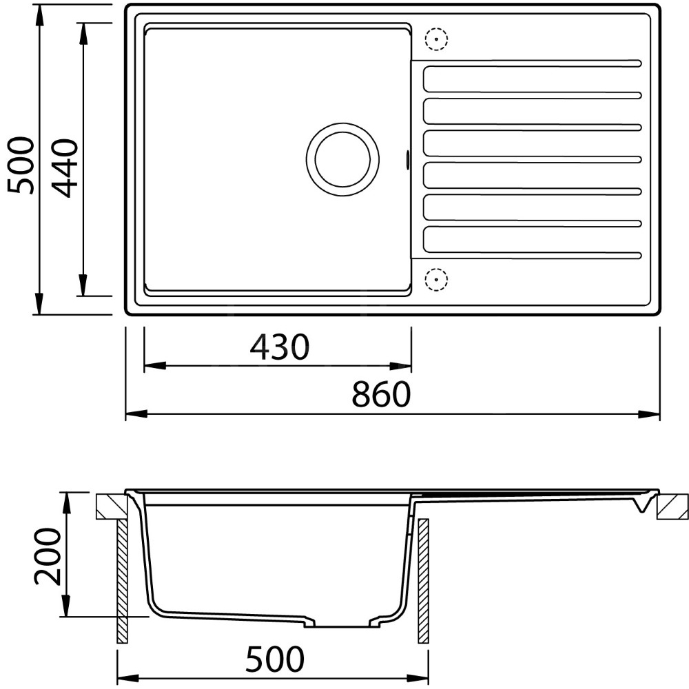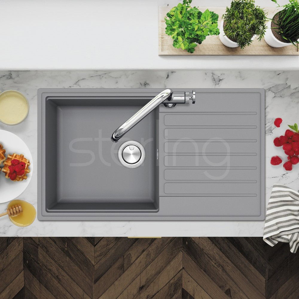 The Kameo sinks feature a 'Smart Ledge' that is designed into each bowl enabling a set of four catering accessories to be employed for chopping, straining and draining. These sinks combine fresh contemporary styling with huge capacity bowls that will swallow up a multitude of jobs. D860L - 860 x 500mm