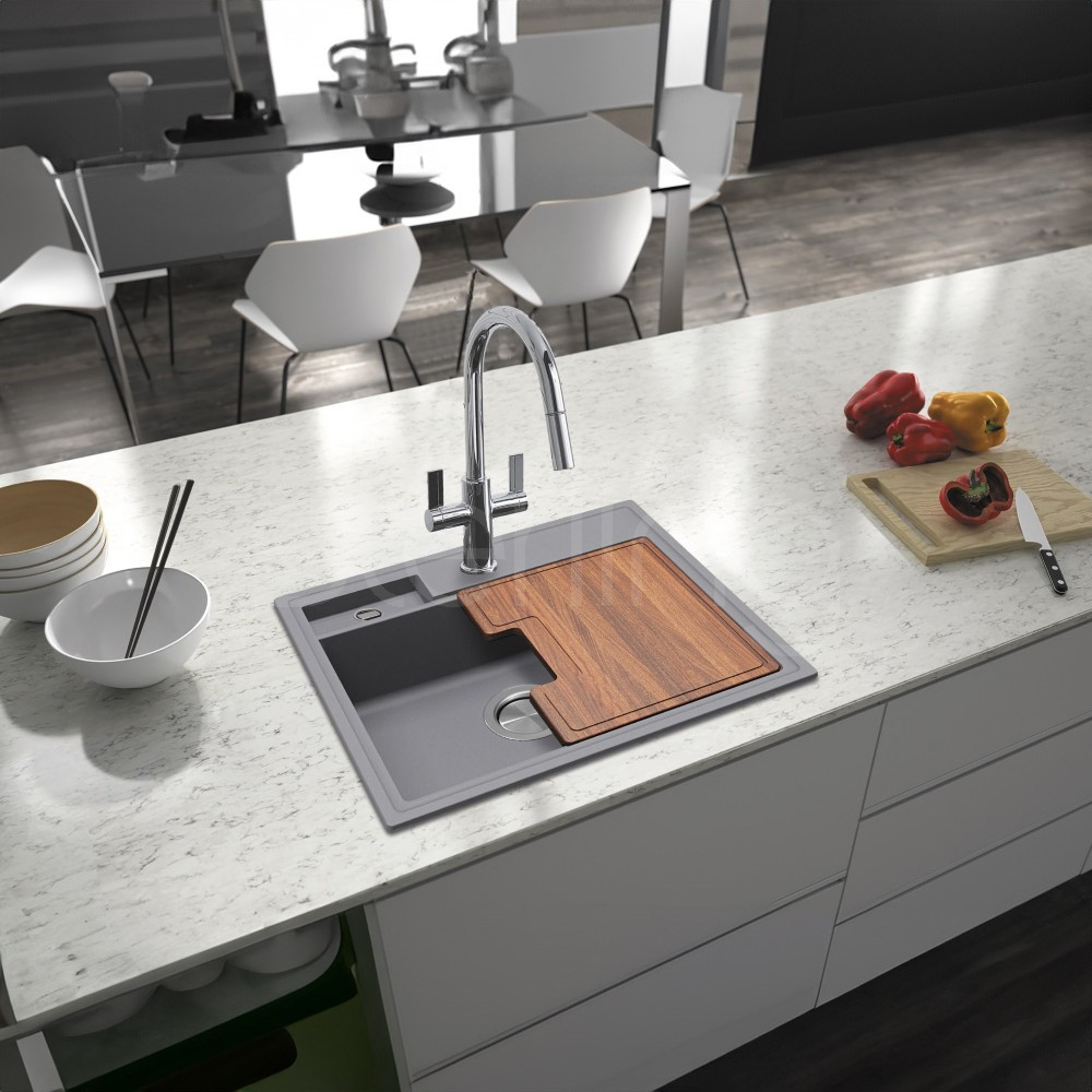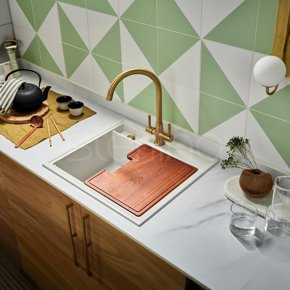 The secondary drainage outlet also acts as the sink's overflow, allowing the main bowl to be used to its maximum depth. Available in 6 Quarex colours; Blizzard, Nude, Fossil, Steel, Stale & Jet.