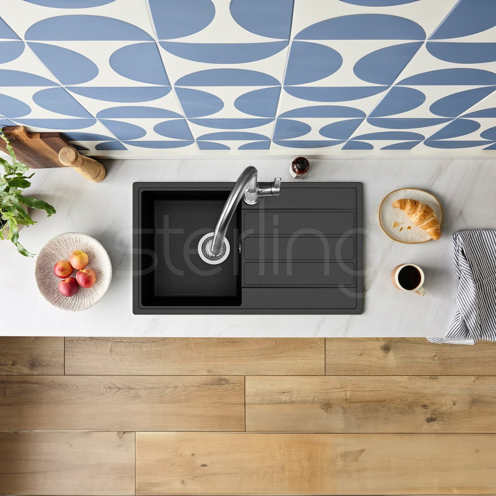 The Mio Compact family of sinks are designed for small kitchen spaces with their scaled down dimensions. The slender profile depth makes them an ideal choice for galley kitchens. Available in three Quarex colours; Blizzard, Fossil & Jet.