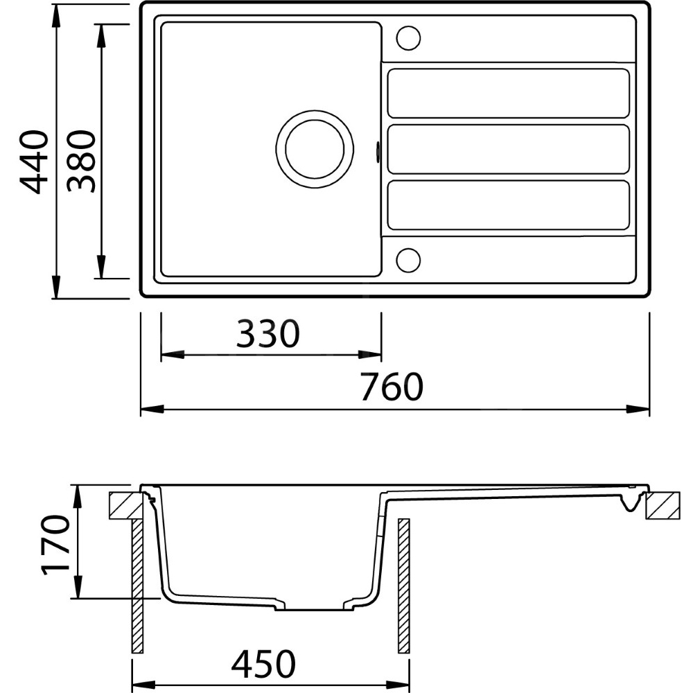 Designed to fit a 450 mm cabinet, the MIOD100S features a larger drainer--perfect for tackling day-to-day chores. With dimensions of 760 x 440 mm, it's a practical and stylish addition to your kitchen.