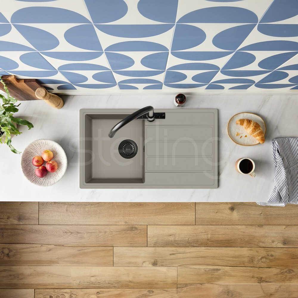 The Mio Compact family of sinks are designed for small kitchen spaces with their scaled down dimensions. The slender profile depth makes them an ideal choice for galley kitchens. Available in three Quarex colours; Blizzard, Fossil & Jet.
