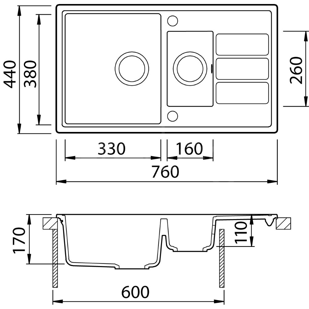 Combining smart design with affordability, the MIOD150S delivers the convenience of a 1.5 bowl sink--even in compact spaces. With dimensions of 760 x 440 mm, it makes a great addition to any kitchen.