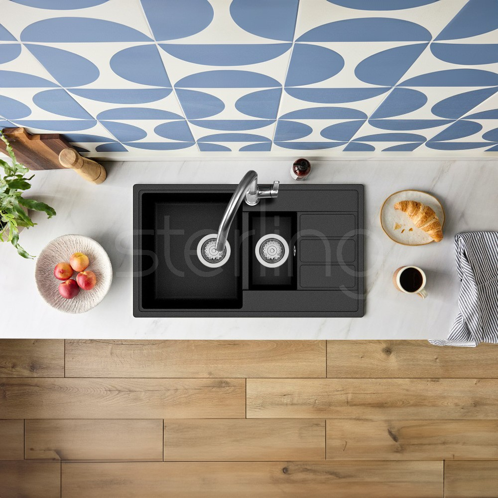 The Mio Compact family of sinks are designed for small kitchen spaces with their scaled down dimensions. The slender profile depth makes them an ideal choice for galley kitchens. Available in three Quarex colours; Blizzard, Fossil & Jet.