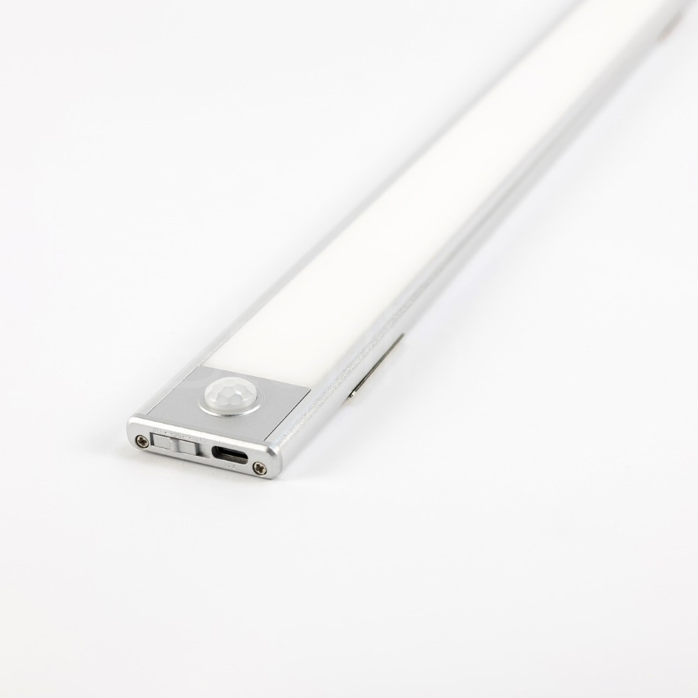 The Opus is a practical, battery-powered LED light designed as a simple retrofit solution for wardrobes, drawers, and cabinets. With no electrical installation required, it offers quick and easy setup using self-adhesive magnetic plates. An integrated PIR sensor provides automatic activation, with dual functionality allowing continuous operation or motion activation in low light to conserve battery. Featuring a rechargeable lithium-ion battery and USB-C charging, it delivers reliable, convenient lighting with a clean, modern aluminium finish.