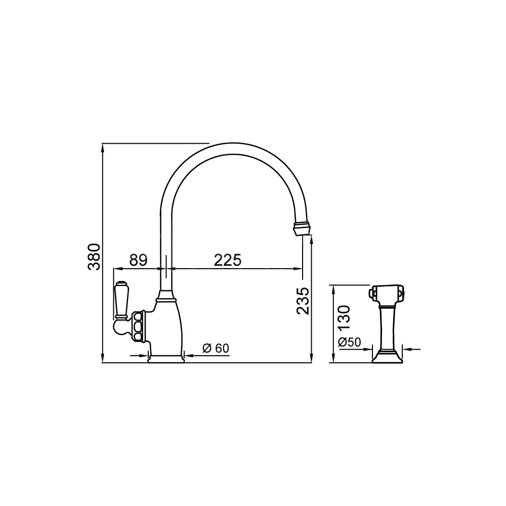 Traditional design meets modern functionality with the beautiful single lever Phoenician kitchen tap. One of Perrin & Rowe's most elegant, minimal designs in the Phoenician collection, this design features one lever handle that controls the flow and temperature of water. This version features a deck-mounted side spray rinse.