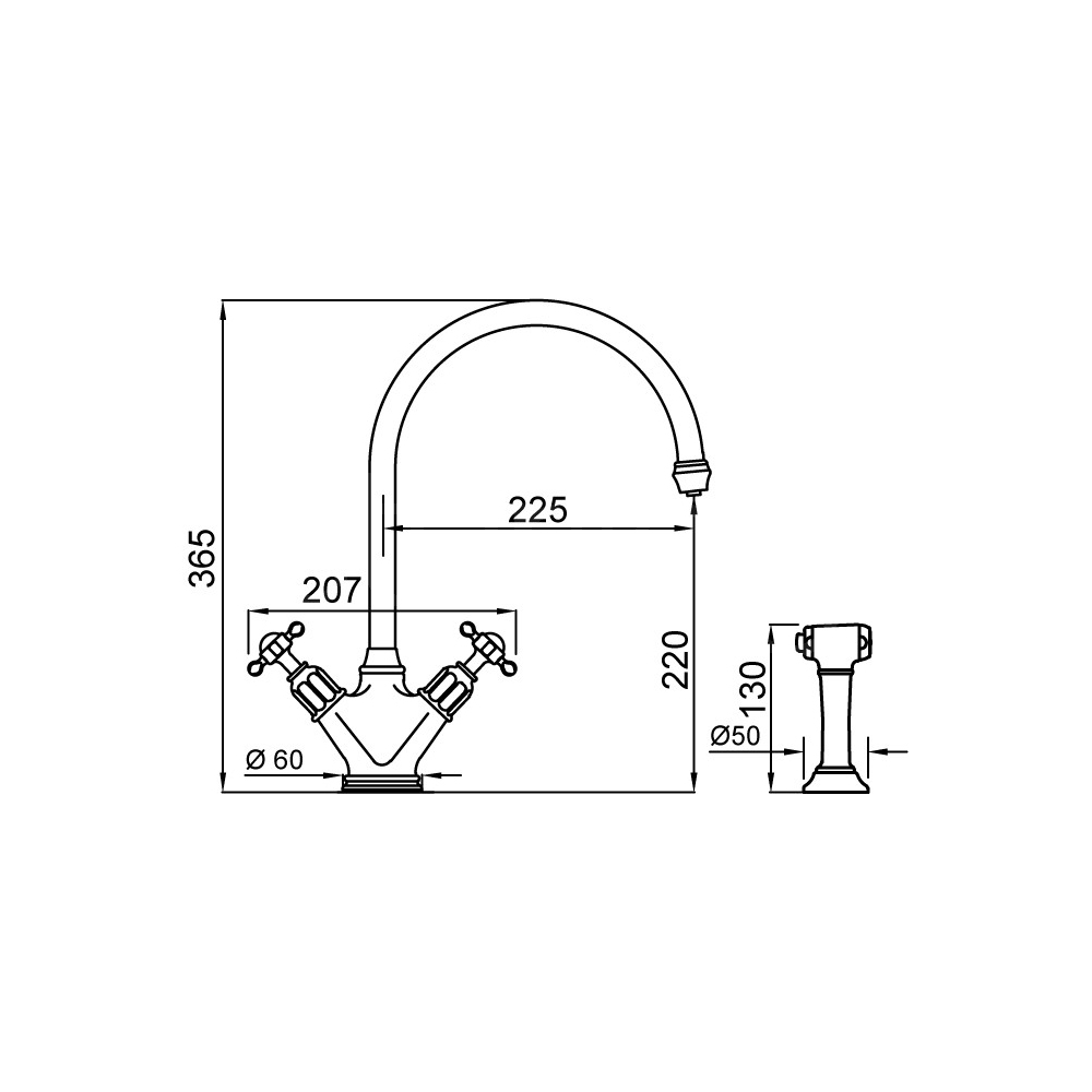 Phoenician is ideal for country or traditional style kitchens. The crosstop handles feature 'Hot' and 'Cold' ceramic indices, and the side spray rinse is a handy addition for helping in the kitchen when cooking, cleaning or filling large pots and pans.