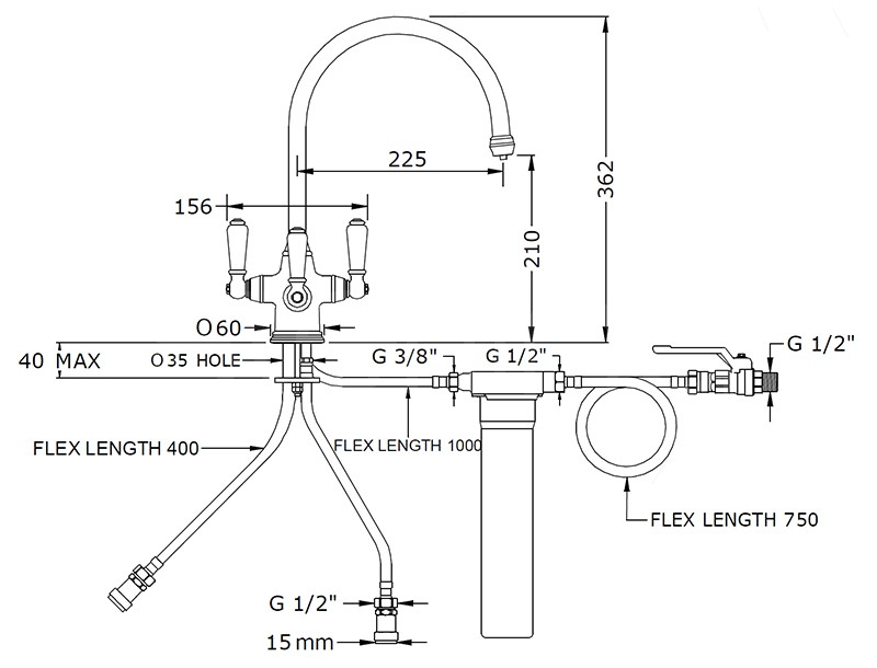 Perrin & Rowe - Phoencian monobloc with cold filter & porcelain lever handles.