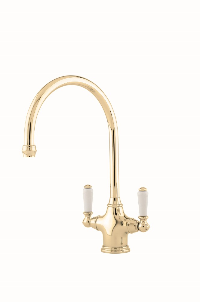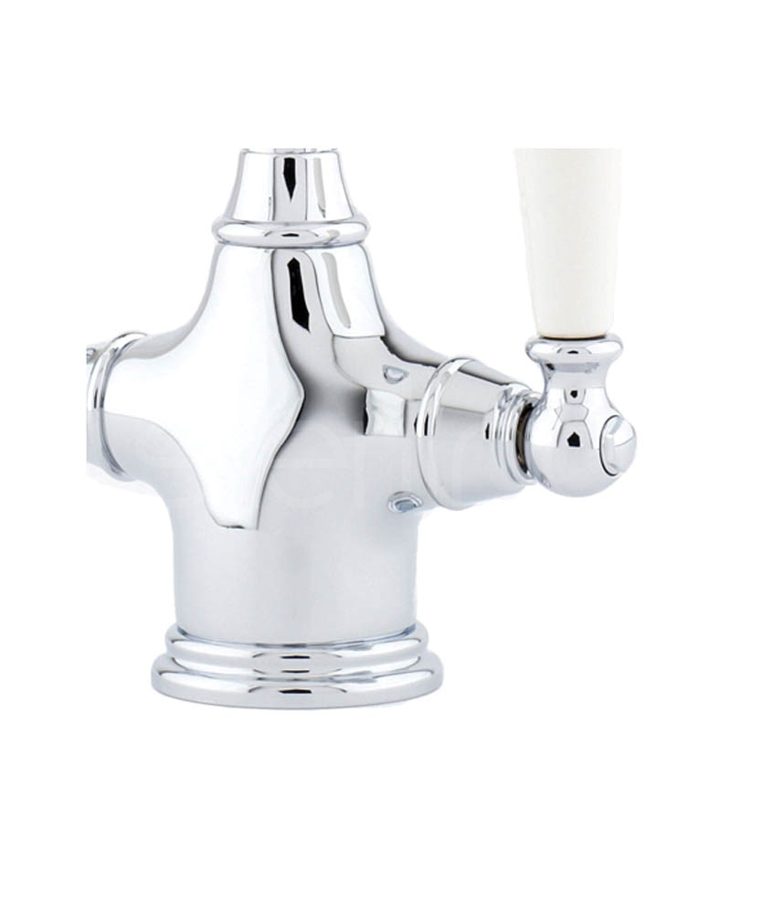 Featuring beautiful porcelain inserts on the lever handles, the elegant Phoenician sink mixer is a timeless addition to your kitchen design.