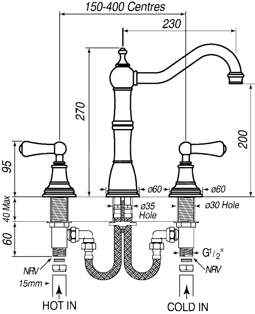 The Provence mixer features a curvaceous spout and detailed design work - an elegant addition to country or traditional-style kitchens. This version includes beautiful lever handles, and there is also a crosstop version available.