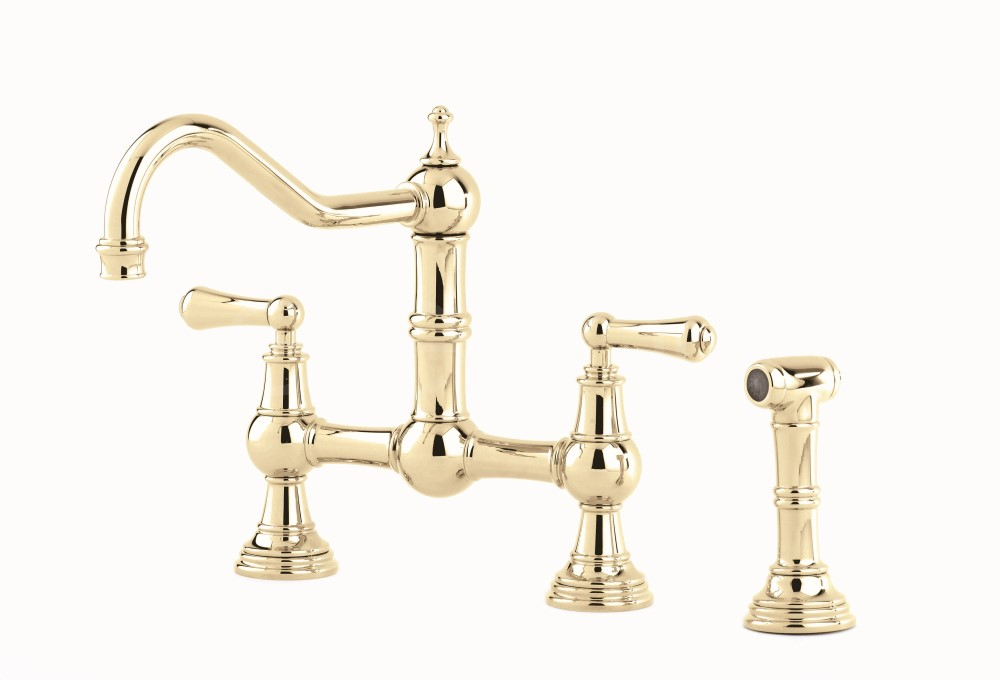 The Provence sink mixer with lever handles is a French twist on the classic bridge model - a beautiful addition to a country-style kitchen. This version also features a handy side spray rinse for help with cooking, cleaning and filling large pots and pans.