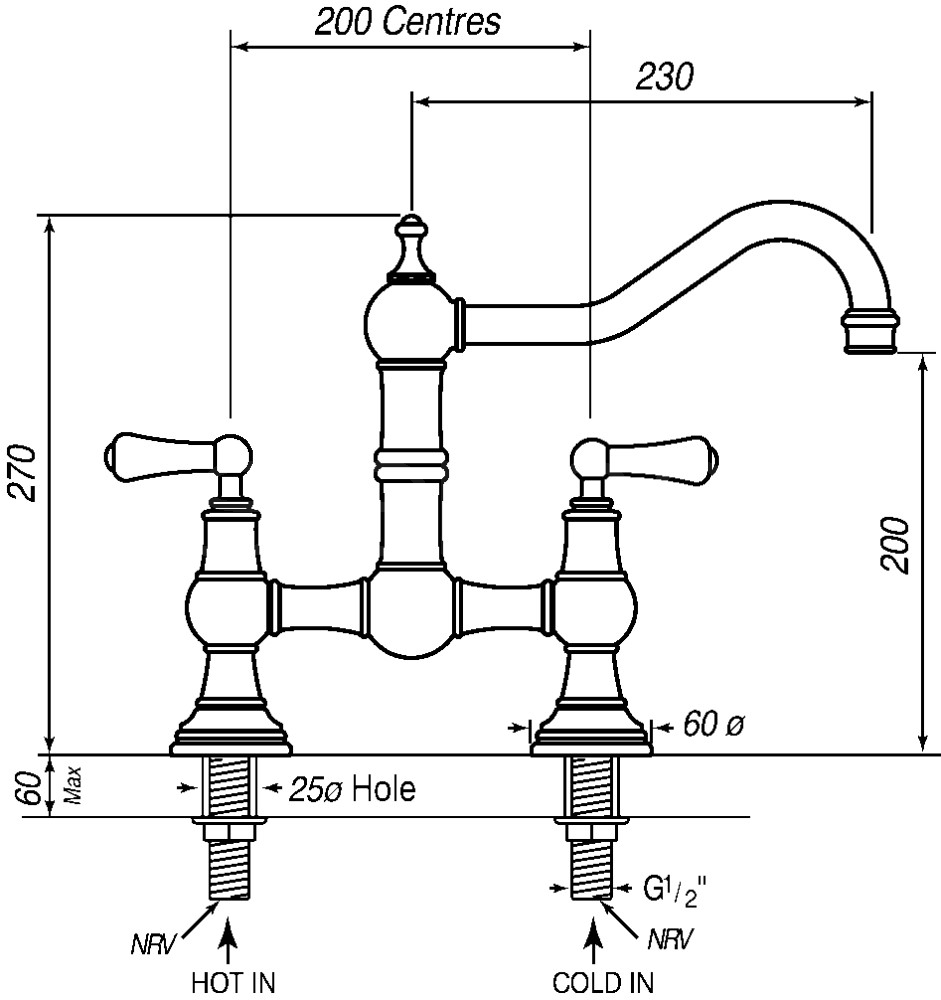 The Provence sink mixer with lever handles is a French twist on the classic bridge model - a beautiful addition to a country-style kitchen. This version also features a handy side spray rinse for help with cooking, cleaning and filling large pots and pans.
