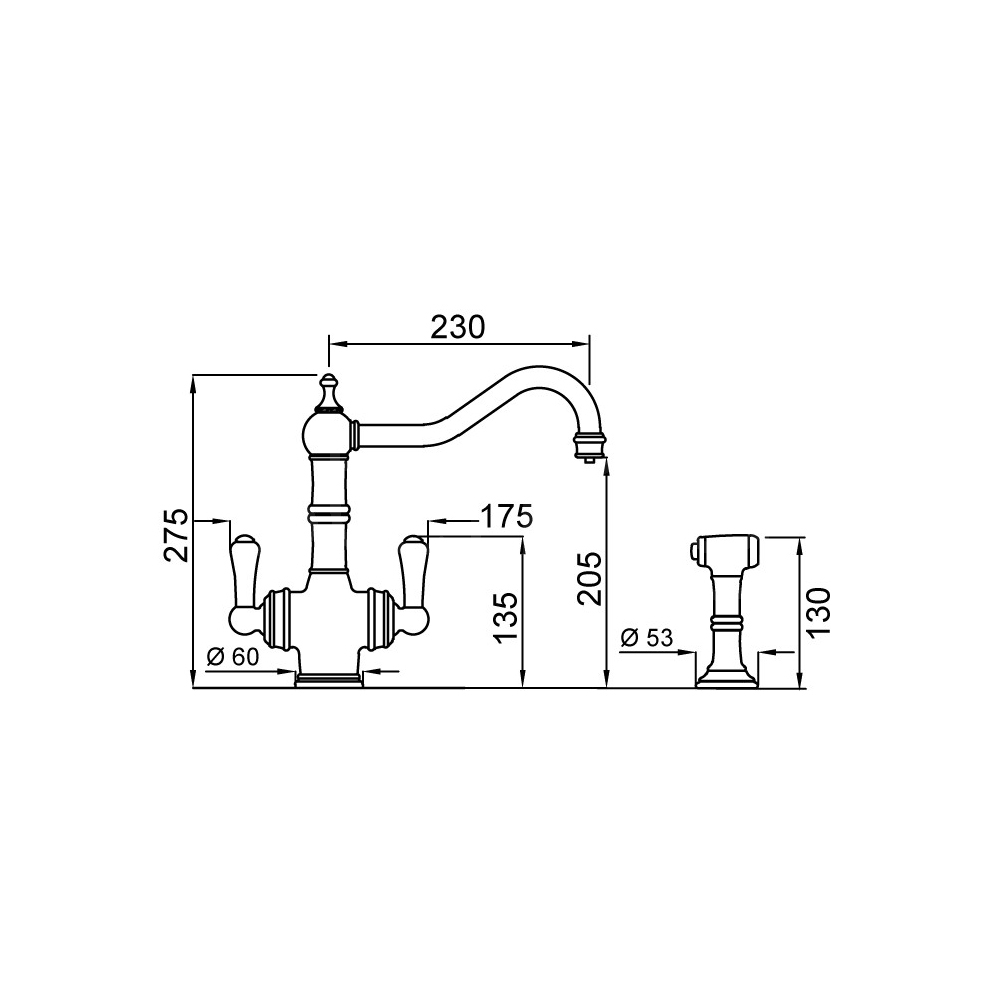 The beautiful country-style Provence sink mixer with filtration is French-inspired in its classic styling. One lever dispensers cold filtered water, whilst another provides regular hot and cold water. This version also features a useful side spray rinse.