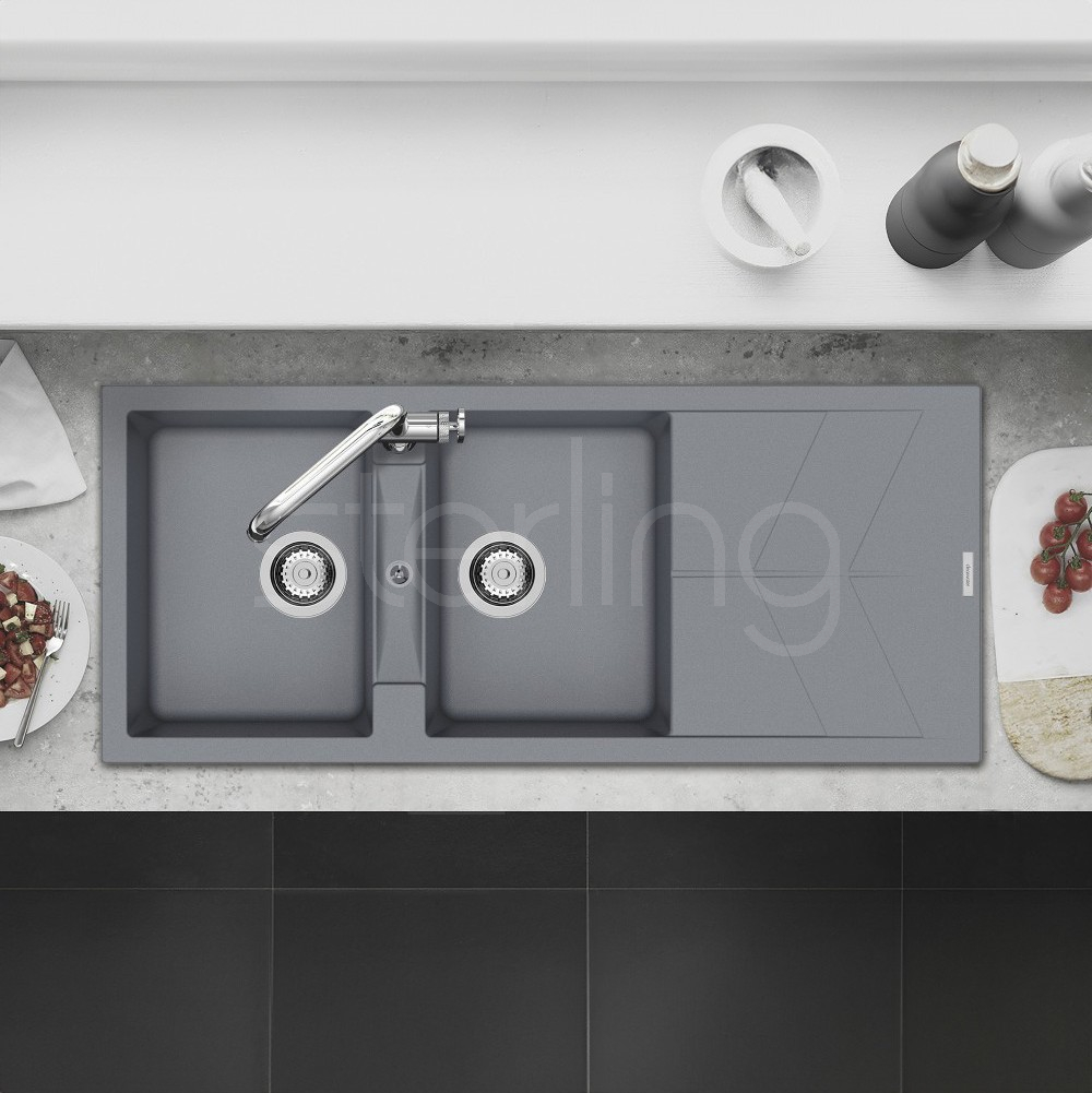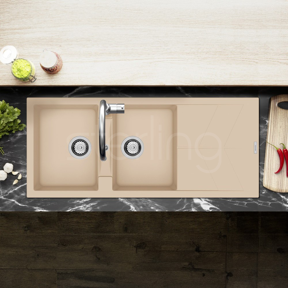 The Rio features an ultra-modern design highlighted by a trendy chevron drainer pattern, combining style and practicality. Engineered with extra-deep bowls, each model incorporates precisely angled draining lines in the base to promote rapid water flow and prevent pooling. The RIOD200 model delivers the additional bowl essential for multitasking in busy kitchens, offering both superior functionality and sleek contemporary appeal. Available in seven colours; Polar, Onyx, Moonstone, Nero, Croma, Concrete and Basalt.