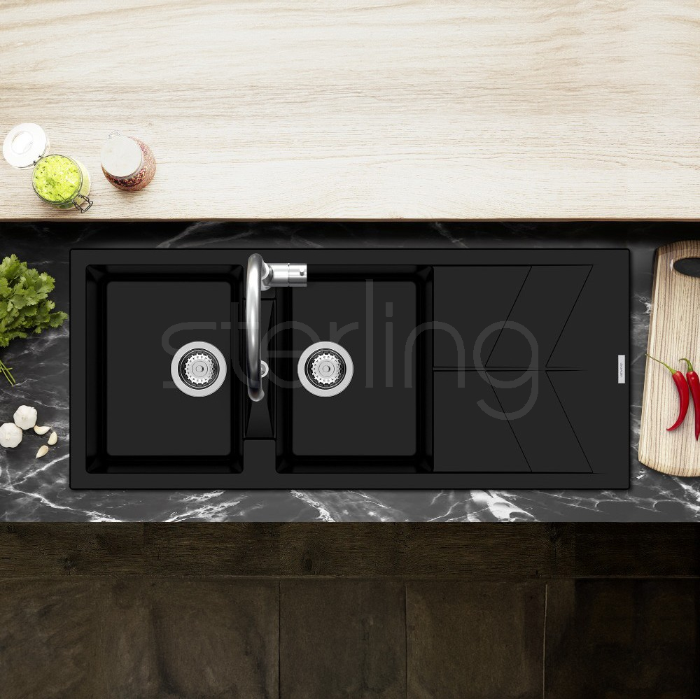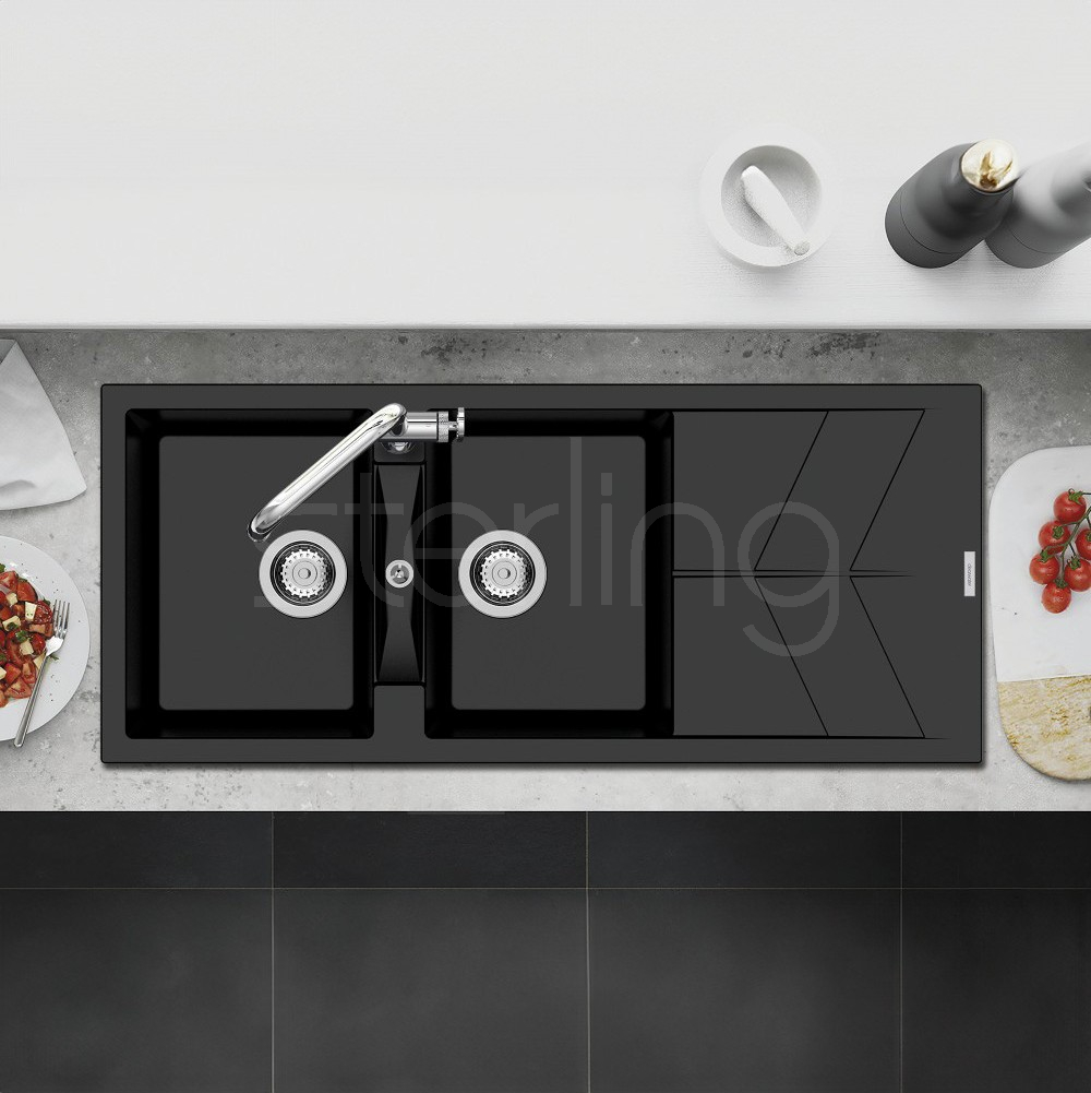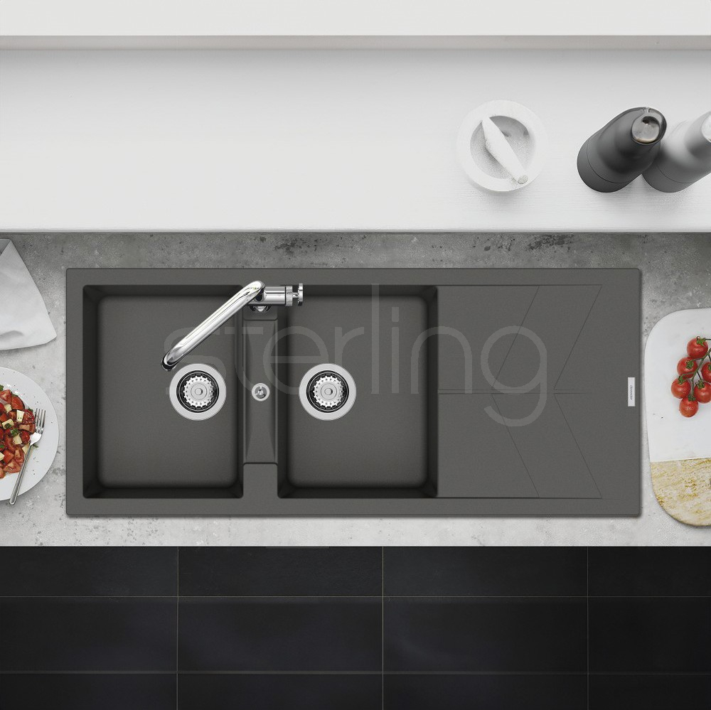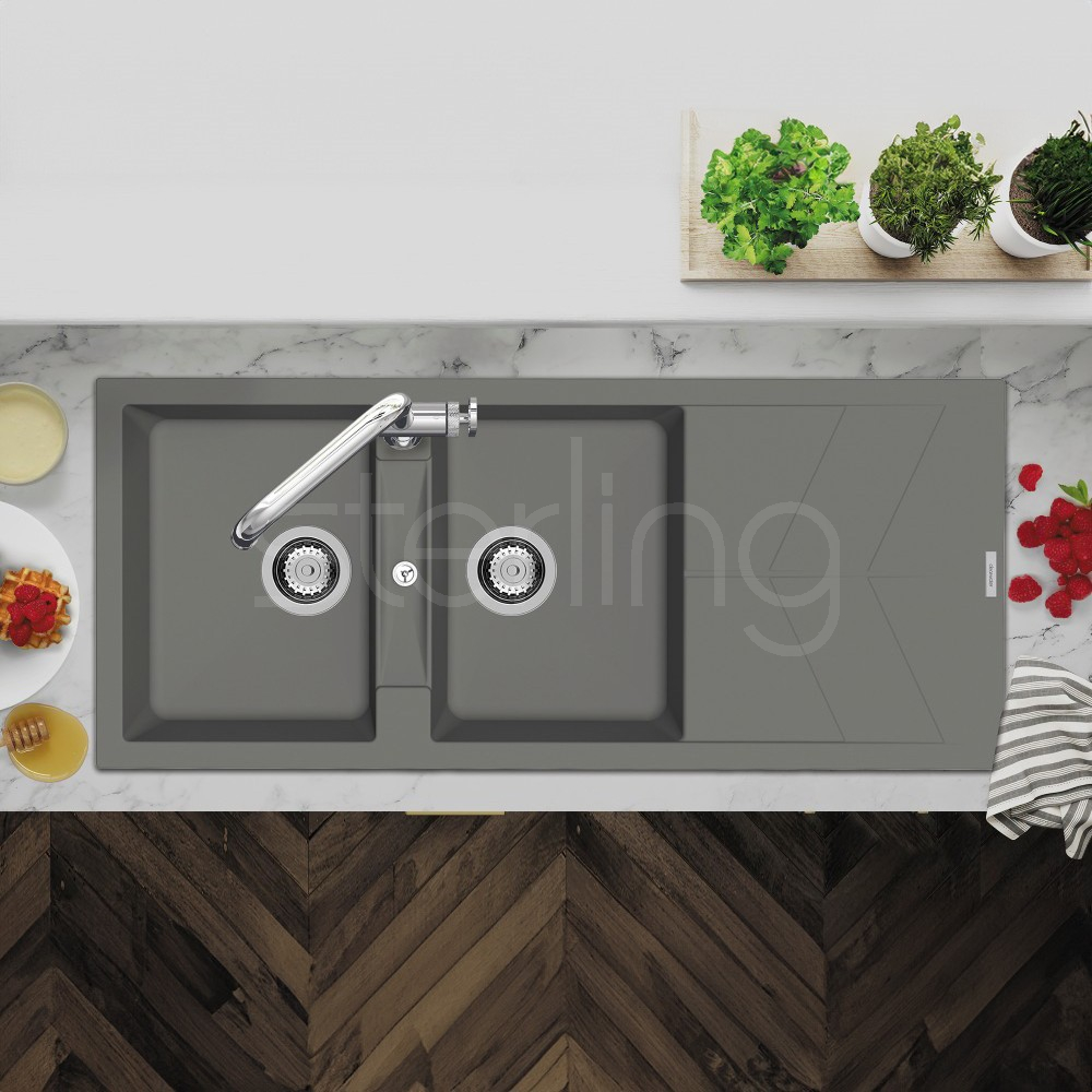 The Rio features an ultra-modern design highlighted by a trendy chevron drainer pattern, combining style and practicality. Engineered with extra-deep bowls, each model incorporates precisely angled draining lines in the base to promote rapid water flow and prevent pooling. The RIOD200 model delivers the additional bowl essential for multitasking in busy kitchens, offering both superior functionality and sleek contemporary appeal. Available in seven colours; Polar, Onyx, Moonstone, Nero, Croma, Concrete and Basalt.