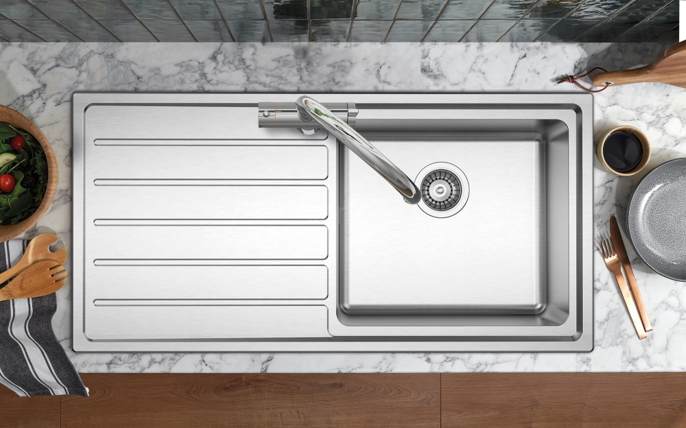 The elegant sink range has been designed with smarty understated features that ooze class. Sharp corners symmetrical draining flutes and robust engineering ensure enduring good looks. Solar 1000 x 500 - single bowl single drainer.