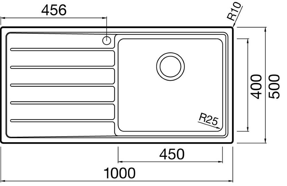 The elegant sink range has been designed with smarty understated features that ooze class. Sharp corners symmetrical draining flutes and robust engineering ensure enduring good looks. Solar 1000 x 500 - single bowl single drainer.