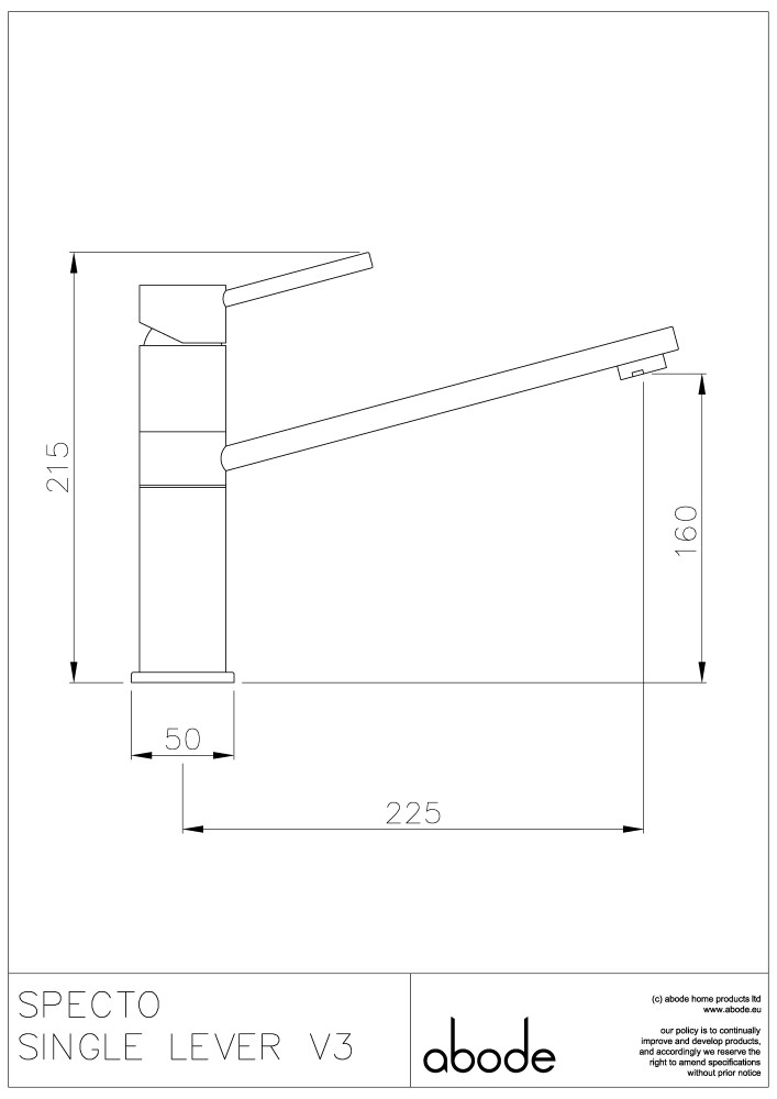 The Specto Single Lever kitchen tap is a beautifully proportioned slimline single lever. It stands at a mere 160mm high and features an upward angled handle and spout style with a flat plane design.
