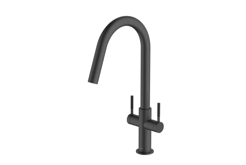 The Topaz J-Spout TOP20 is a sleek and contemporary twin-lever monobloc kitchen mixer tap, featuring minimalist styling and elegant high-set knurled handles. Its distinctive J-shaped spout offers 360° swivel functionality, providing excellent reach and flexibility for daily kitchen tasks.