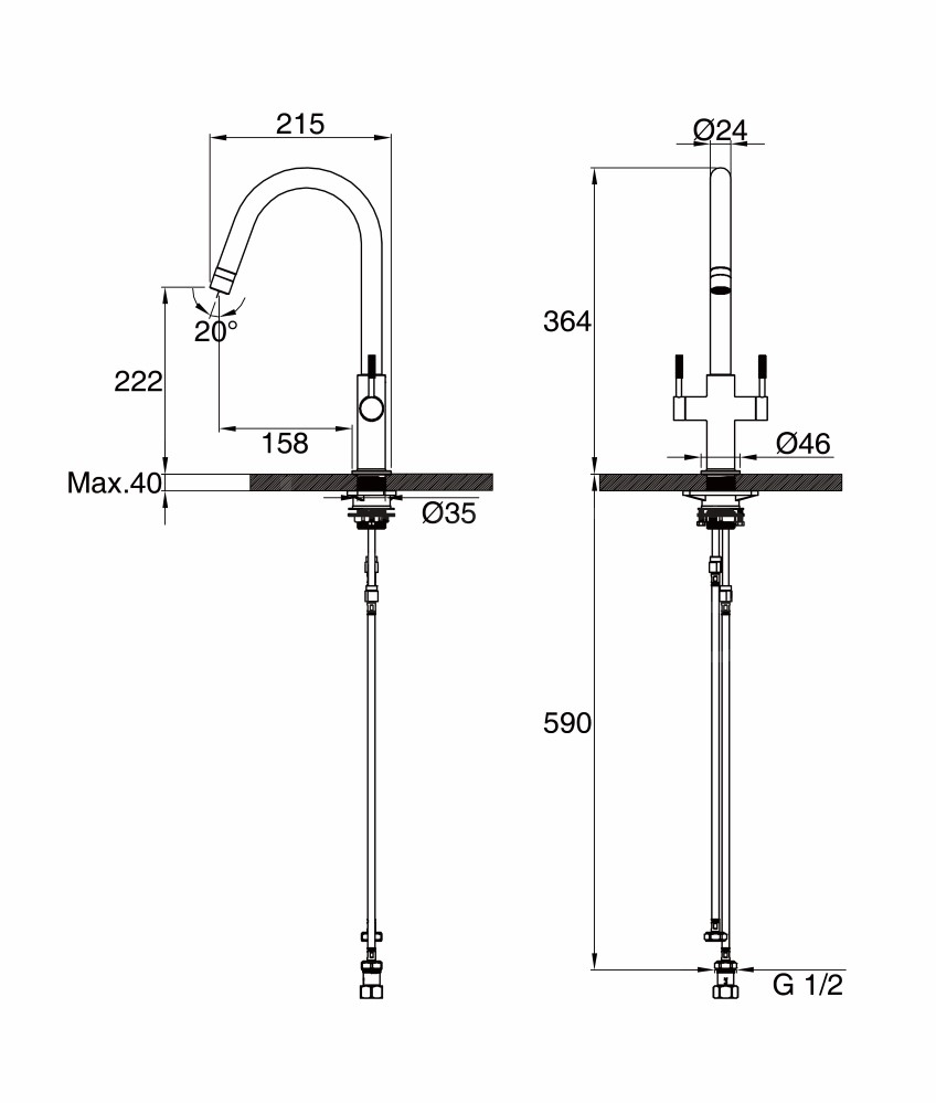 Crafted for medium-pressure systems (minimum 0.5 bar), this WRAS-approved tap ensures smooth, reliable performance and precise control. Built with a durable PVD finish for enhanced scratch resistance and surface hygiene, the Topaz TOP20 delivers both style and substance for modern kitchen spaces.