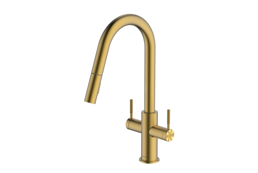 Topaz Pull-out slim form has a poised, ready for action stance that is very appealing. The high-set controls are a pleasure to use with their unique knurled controls, whilst the dual-flow handspray has an assured smooth pull-out movement that will multitask with ease. Available in 3 finishes; Brushed Nickel, Matt Black & Brushed Brass.