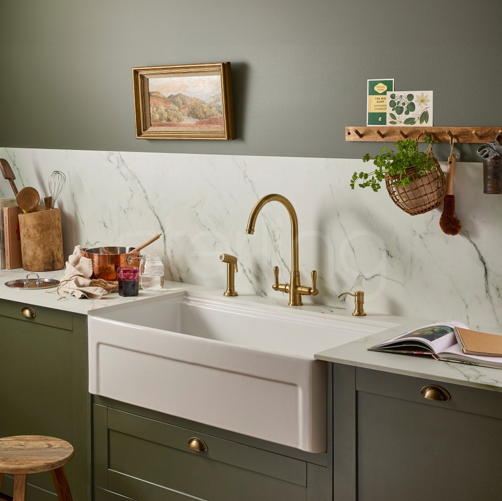 What truly sets the Seaton apart is its reversible apron front, offering two distinct looks in one sink. One side features a classic plain façade for a timeless, understated appearance, while the reverse presents an elegant recessed panel for a more decorative, characterful statement. Simply choose the side that best suits your kitchen design.