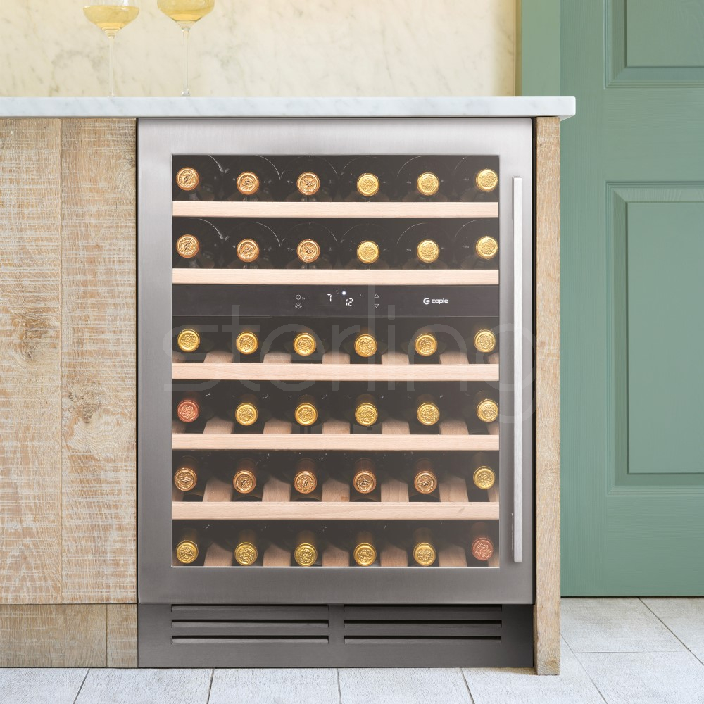 Shelves can accommodate 750ml Bordeaux, Burgundy and Champagne bottles.