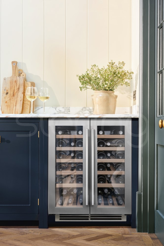 Undercounter Dual Zone Side by Side Wine Cooler Stainless Steel.