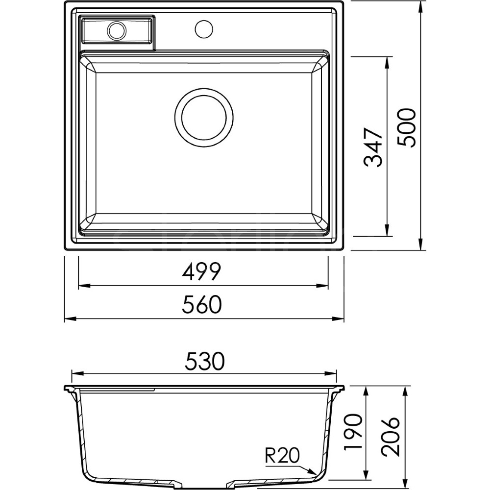 The secondary drainage outlet also acts as the sink's overflow, allowing the main bowl to be used to its maximum depth. Fossil.