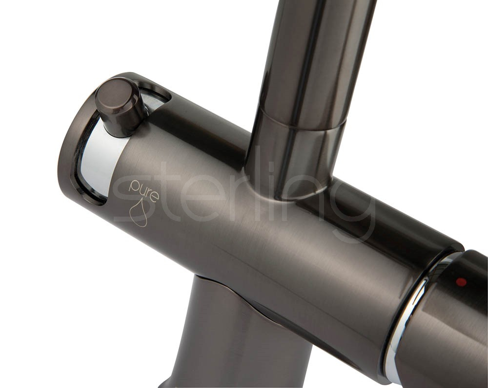 The Malin MA2GM Filter Tap is a modern, high-performance solution for kitchens seeking both style and functionality. Featuring a sleek gunmetal finish, this monobloc mixer tap offers independent control over hot, unfiltered cold, and filtered cold water through its twin lever design. The left lever dispenses filtered water, ensuring purity and taste with every use.